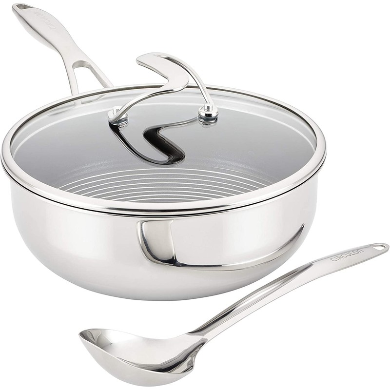 - WHAT YOU GET: Circulon hybrid clad stainless steel 3.5-quart chef pan with glass lid and a 13-inch stainless steel solid spoon