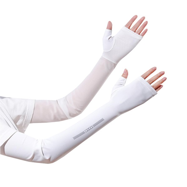 [Ciyar] 日焼け防止手袋 アームカバー 指掛けタイプ 女性向け UPF50+ 腕カバー UV手袋 5本指出し夏 紫外線対策 通気性 伸縮性 吸汗速乾 滑り止め アウトドア 手荒れ対策 通勤 通学 運転 自転車 White