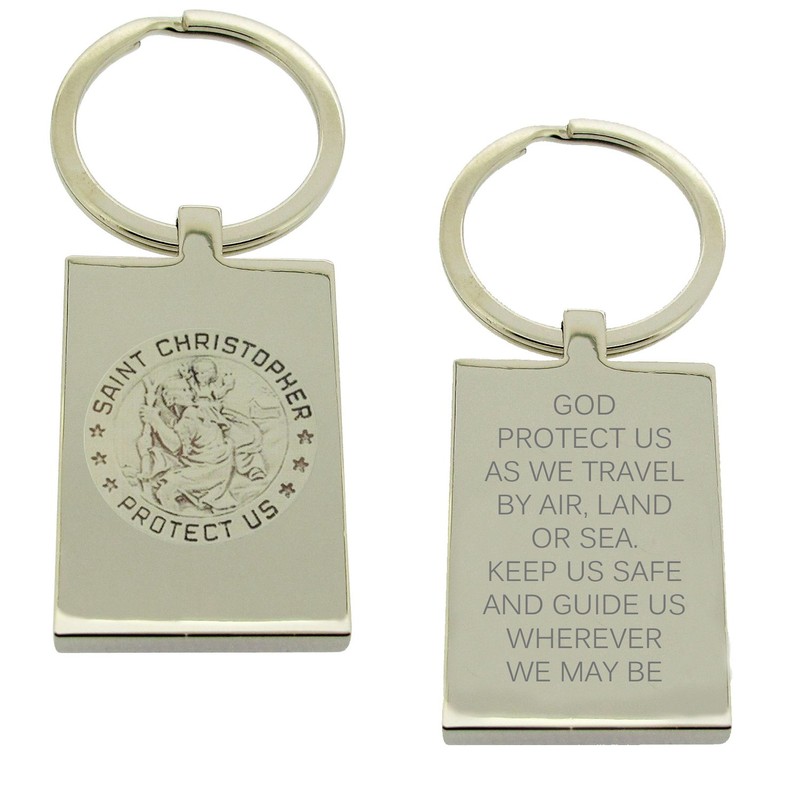 - Mirror Polished St Christopher Keyring With Travellers Prayer