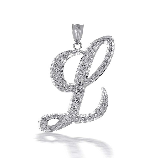 Claddagh Gold - Certified 925 Sterling Silver Script Letter L Initial Charm Pendant