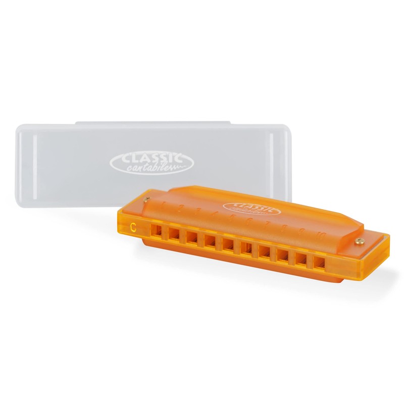 Classic Cantabile FBH-10 ON FunKids Harmonica in C Major - Diatonic 10 Hole Plastic Harmonica - Phosphor Bronze Reeds - Ideal for Children - Includes Plastic Case - Orange