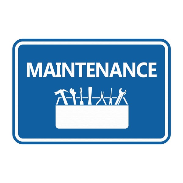 Our Classic Framed Maintenance Sign can be attached to the door, wall or window of your home or business. The sign text and design work is laser engraved into sturdy plastic. Each sign comes with an adhesive foam backing, allowing them to be attached to any flat surface. Comes in multiple colors. Our maintenance signs are great for your home or business. Large sign is 6"H X 8" W