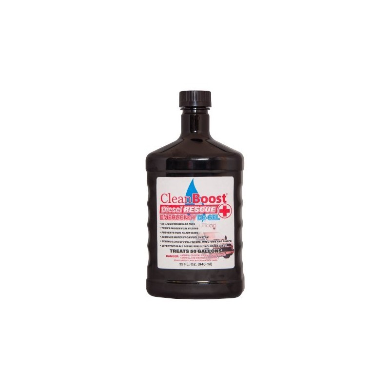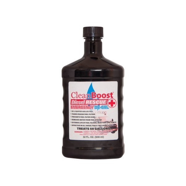 - CleanBoost Diesel Rescue 32oz is an Emergency De-Gel product that can Re-Liquefy Diesel Fuel instantly in just a few quick steps.
