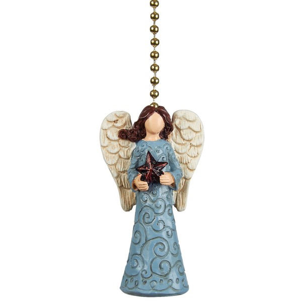 Clementine Designs Tranquil Blue Angel with Star Ceiling Fan Light Dimensional Pull