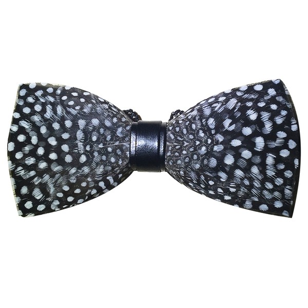 Cloud Rack mens Handmade Feather Bow Tie, Black White, Medium