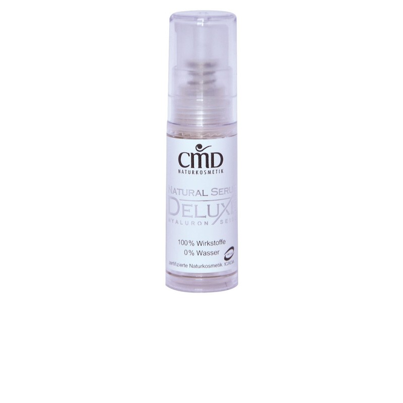 With the natural serum Deluxe offers CMD Natural Cosmetics intensive care for demanding and mature skin. Without water 150ml addition can be there is the effect of highly concentrated hyaluronic acid, natural plant extracts and the finest quality silk fully unfold. With regular use, improves skin's elasticity, skin functions supported and small wrinkles plumped up. This active ingredient Serum counteracts aging of the skin and perfect balance of moisturizing, smoothing and firming properties. The serum is suitable for all skin types. It is not greasy, does not stick but gives a pleasant skin feeling.