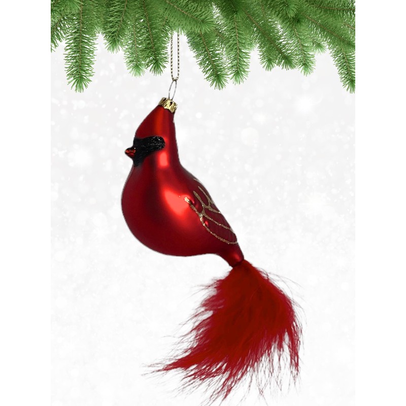 - Cobane Studio Cardinal with Tail Feather Ornament is Made with Skillfully Hand-Blown Glass, and is Carefully Hand-Painted. Created and Designed by Margaret Cobane.
