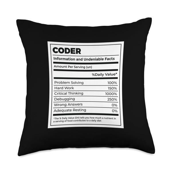 Coder Nutritional Facts Coder Programmer Computer Geek Nerd Throw Pillow