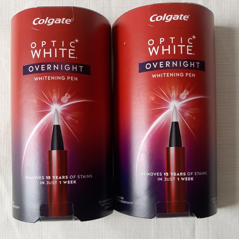 2 Colgate Optic White Overnight Whitening Pen Teeth Stain Remover.