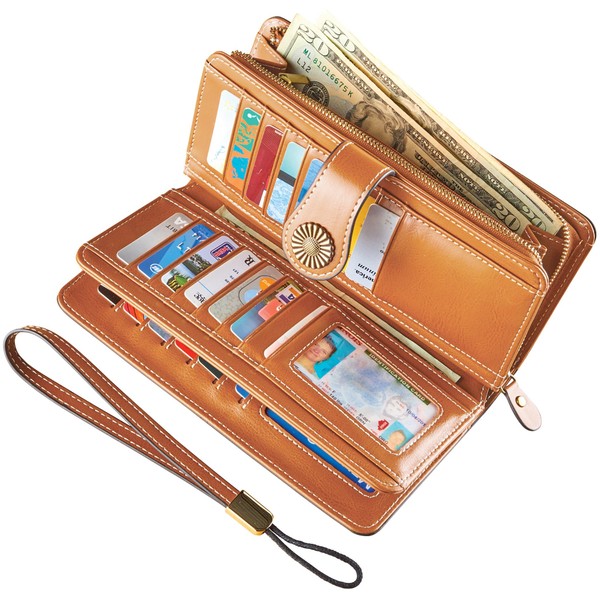 - The large capacity wallet has 24 slots for credit cards, 2 sections for cash, coupons and receipts and 2 see-through slots for IDs or photos