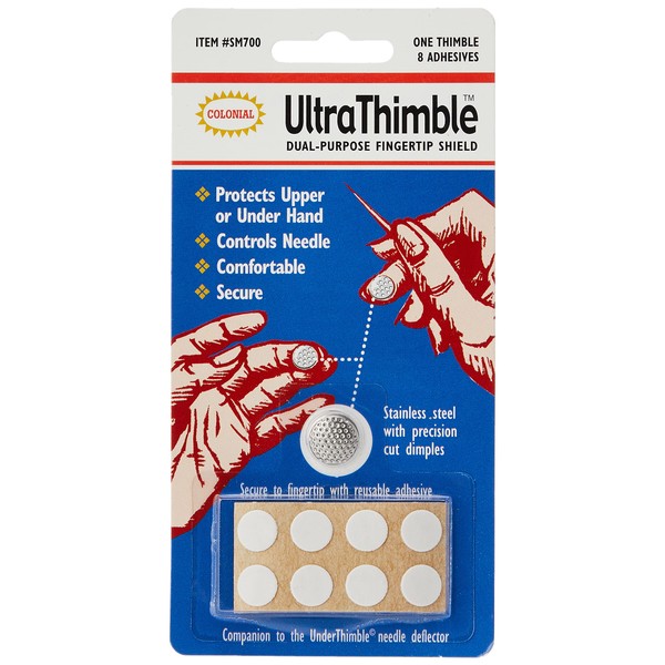 - Eight reusable adhesives can be used again and again to keep your UltraThimble in place