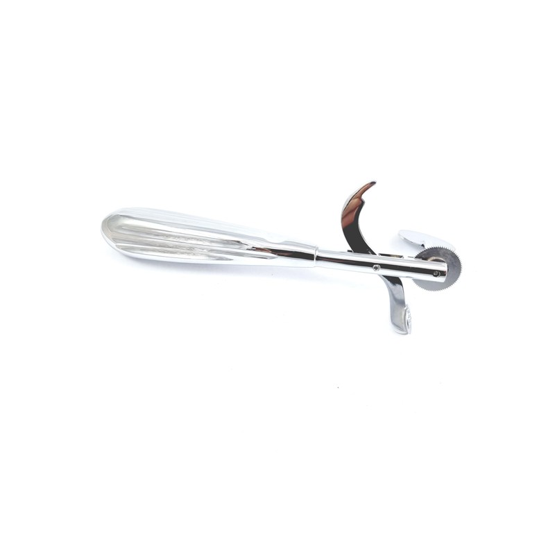 Gently slide the bottom blunt point under the ring. It is advisable to use skin friendly lubricant to make this easier. Firmly press down and grasp the ring with your non-dominant hand. Use you’re your dominant hand to crank/rotate the blade using the key clockwise or opposite towards you.