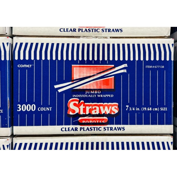 Comet 7-3/4" Wrapped Plastic Straws, Clear, 3000 count