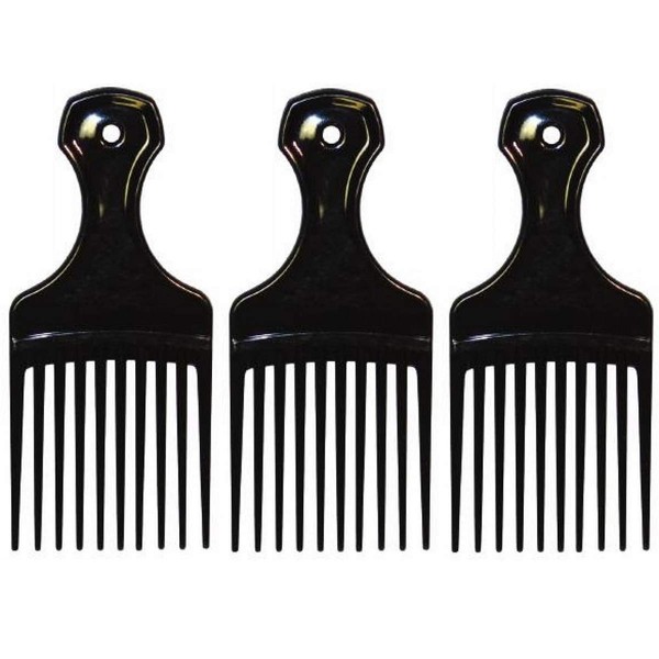 Comfort Axis Plastic Mini Comb and Lift Hair Pick, 3 Pack, Black