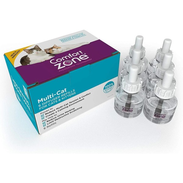 Comfort Zone MultiCat Calming Diffuser Refill for Cat Calming, 6 pack