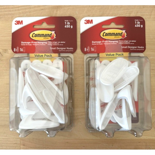 2 Pack Command 1 Lb. Small White Designer Hook Value Pack (8 Hooks, 16 Strips)