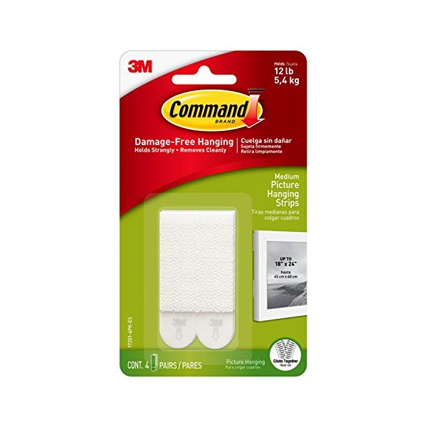 Command Picture & Frame Hanging Strips, Medium, White, 4-Strip, 6-Pack (24 Pairs Total)