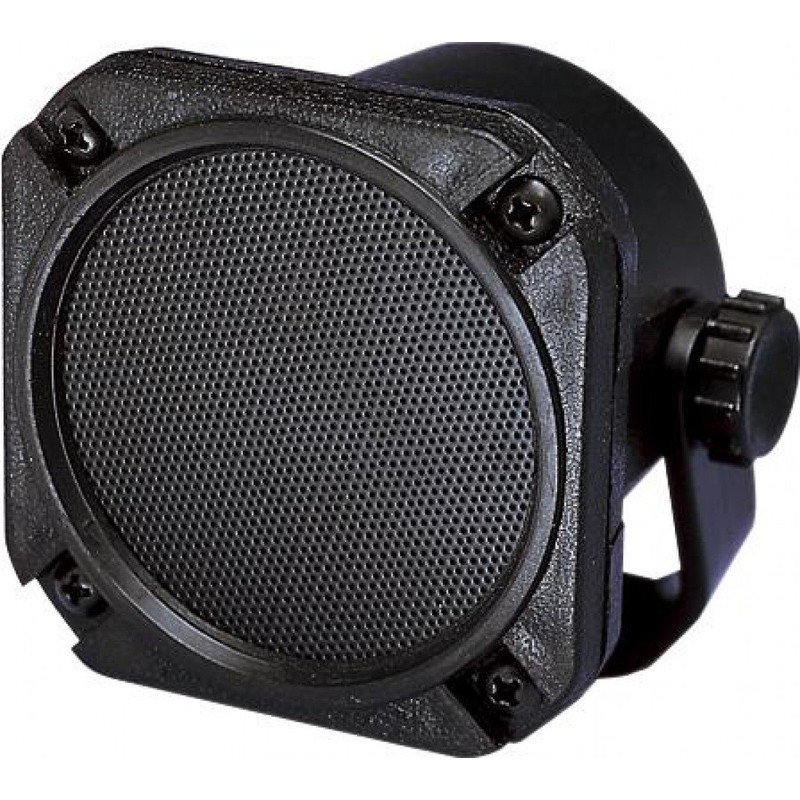 - Weatherproof communication extension speaker in a compact robust black plastic cabinet.