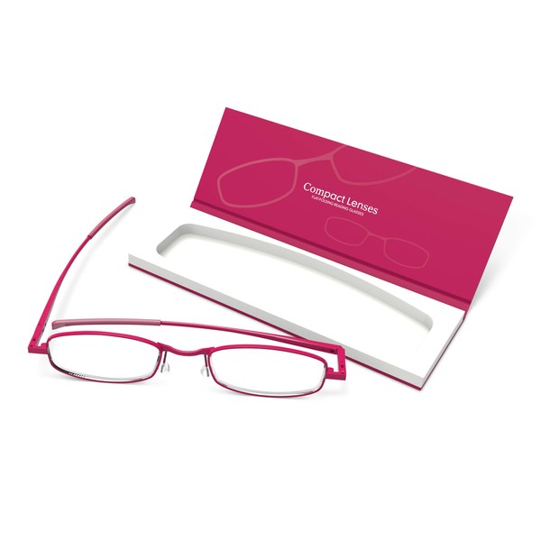 Super slim reading glasses designed to save valuable space in your pocket or bag. The unique folding mechanism allows the glasses to fold down incredibly flat without compromising the quality or the design. They also come presented in a super-thin notebook-style case, colour matched to the frames. The Compact Lenses are comprised of lightweight, stainless steel frames and optical grade aspheric lenses. They come in one smart unisex frame style in 12 different designs that are sold separately (berry, surf, frost, chilli,cinnamon, olive, port, orchid, twilight, storm, jet and espresso) with 5 different lens strengths available.