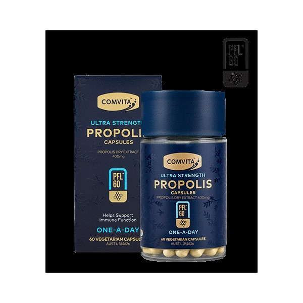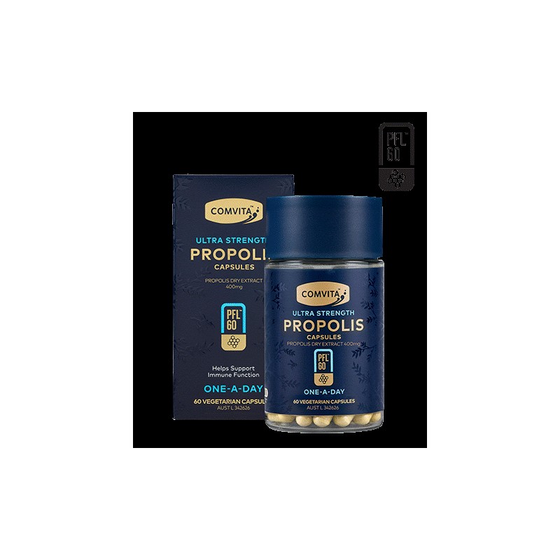 Comvita PFL 60 Ultra Strength is our most potent one a day Propolis capsule.