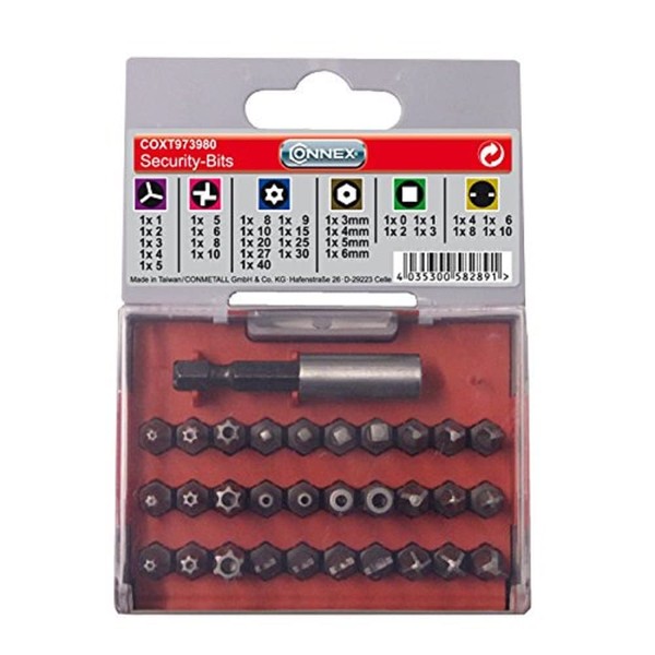Connex COXT973980 Security Screwdriver Bit Set with Magnetic Holder, Multi-Colour