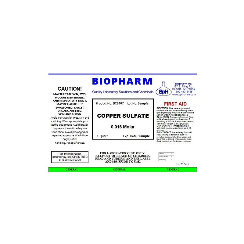 Copper Sulfate 0.016 M Solution | 1 Quart (950 mL)
