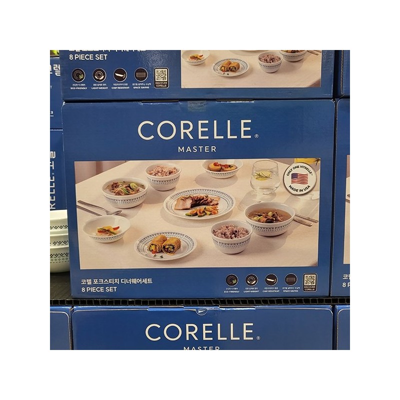 Corel folk stitch dinnerware set 8 pieces / 코렐 포크스티치 디너웨어세트 8입