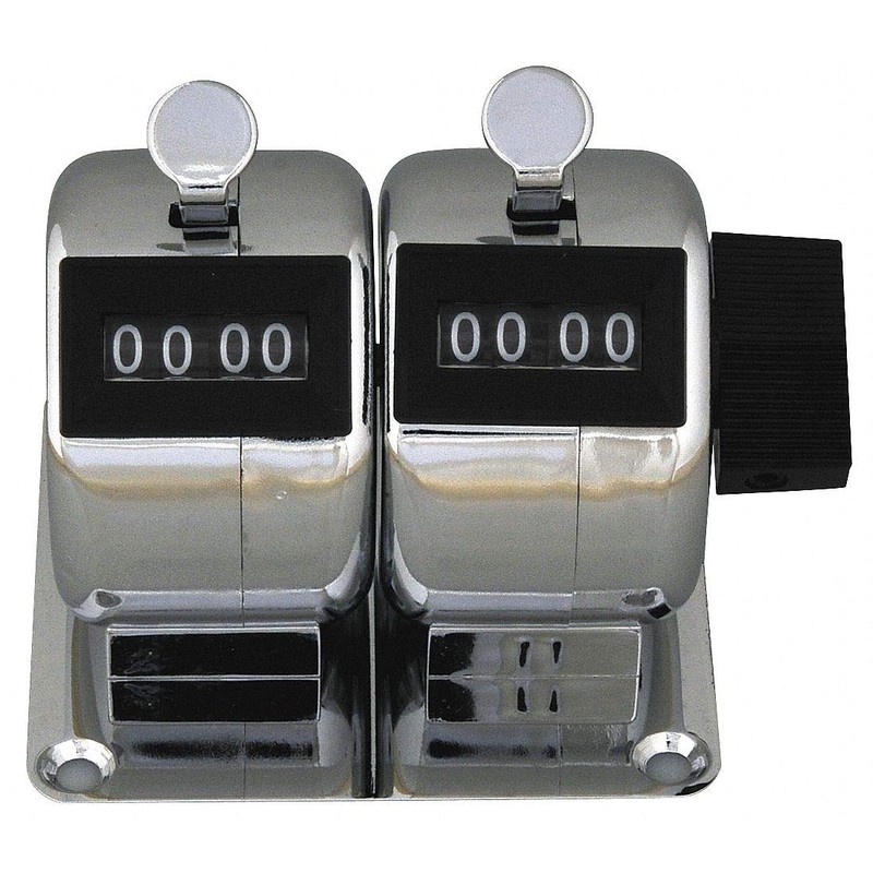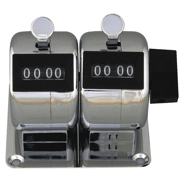 - Price For: Each Display: White Digits, Black Background Special Features: 2 Gang Item: Mechanical Tally Counter Number of Digits: 4 Mounting: Bench Top Depth: 2.36" Width: 2.68" Reset Type: Knob/Side Input Type: Hand Operated Height: 2.76" Color: Silver Country of Origin (subject to change): Taiwan