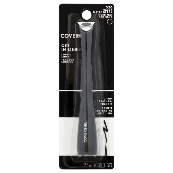 COVERGIRL Get In Line Liquid Eyeliner, Black Crystal, Long Lasting, 0.08 Ounces, Feather-Fine Tip, Contour-Grip Handle, Quick-Dry Liquid Eyeliner, Removes Easily