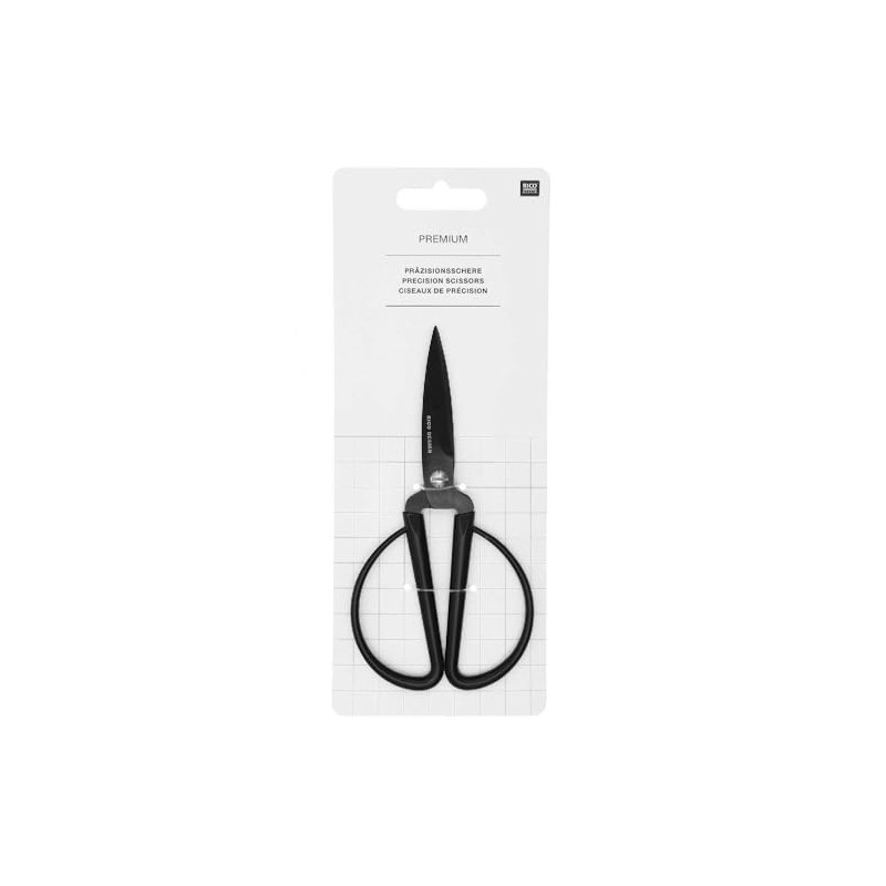 - Discover the Rico Design embroidery scissors made of black metal, elegant and precise tools with 14 cm. Designed for a clean and perfect cut. These scissors are a must have for your sewing and embroidery projects. Key features include a length of 14 cm, stainless steel blades and a black metal paint. These scissors offer unparalleled precision, ideal for fine embroidery work. Your design...