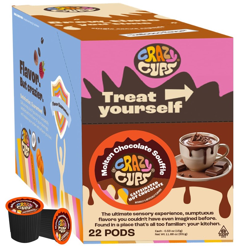 Crazy Cups Caffeinated Hot Chocolate, Molten Chocolate Souffle Pods For Keurig K Cups Machines, 100 Mg Of Caffeine Coffee Substitute Hot Cocoa Pods, 22 Count