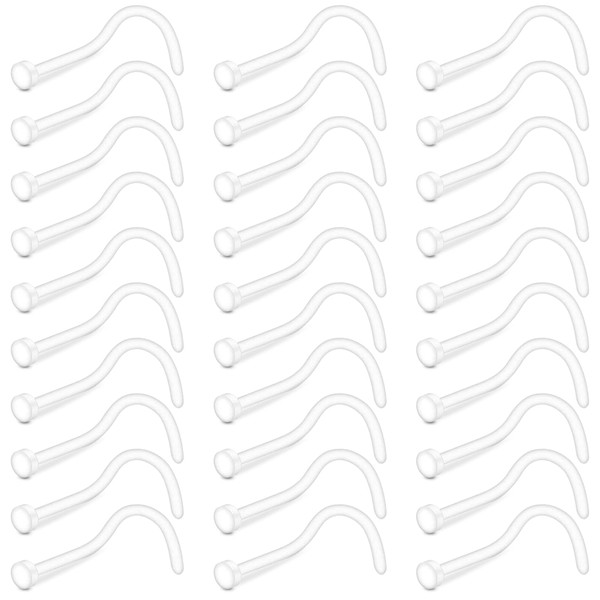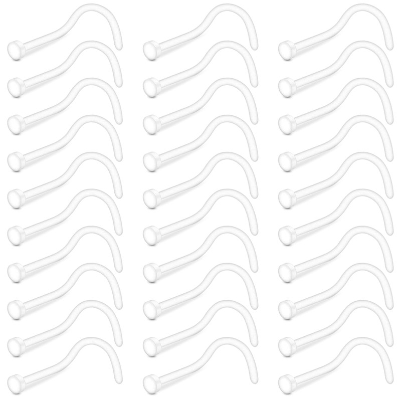 Crdifu 30pcs Clear Nose Studs 20g Flat Top Invisible Screw L Shaped Nose Piercing for Work School, Plastic