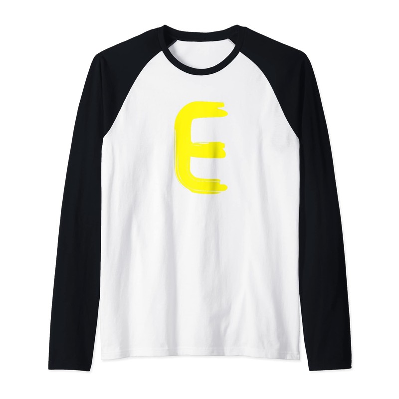 Creative Bold Yellow Letter E - Design Alphabet - Marker Raglan Baseball Tee