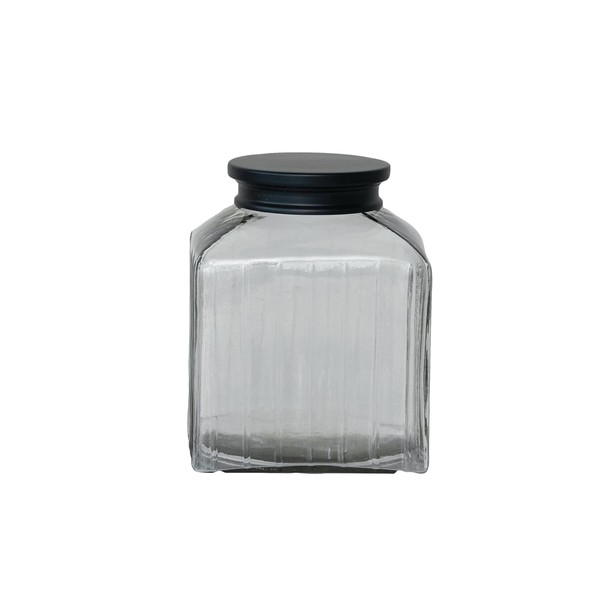 Creative Co-Op Large, Clear Square Glass Jar with Lid, Black