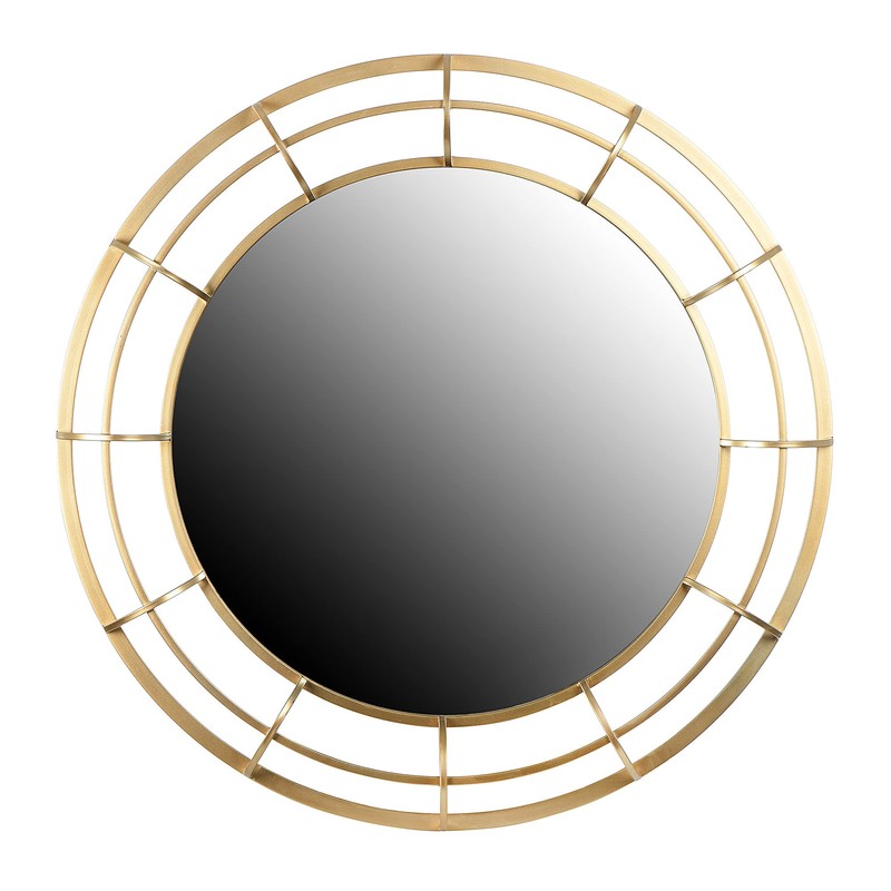 - Round wall mirror with wire frame in a gold finish; Includes keyholes for easy mounting