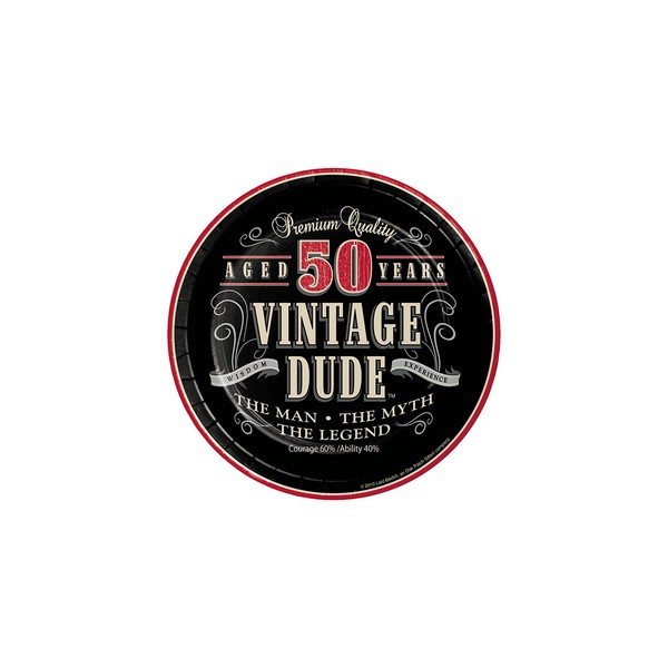 Creative Converting 8 Count Vintage Dude 50th Birthday Round Dessert Plates