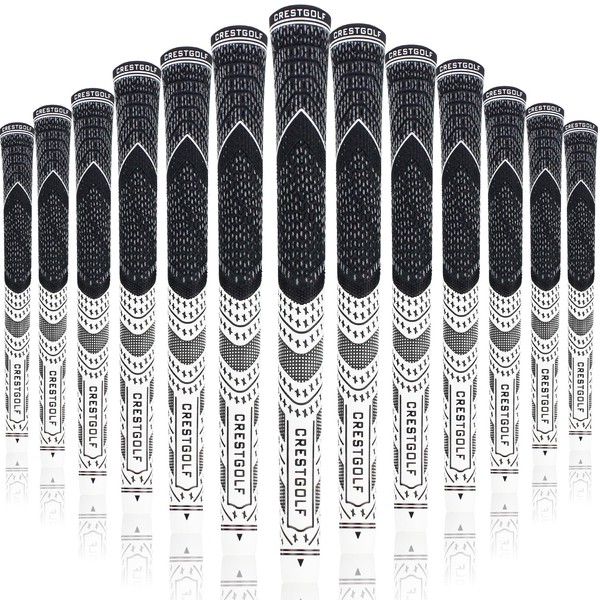 Crestgolf Updated Multi Compound Golf Grips for Golf Clubs Set of 13 More Non-Slip Ecological Cotton Yarn Thread Technology (White, Medium)