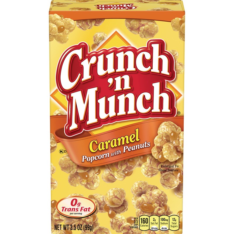 - Includes twelve 3.5-ounce snack-size boxes of CRUNCH 'N MUNCH Caramel Popcorn with Peanuts
