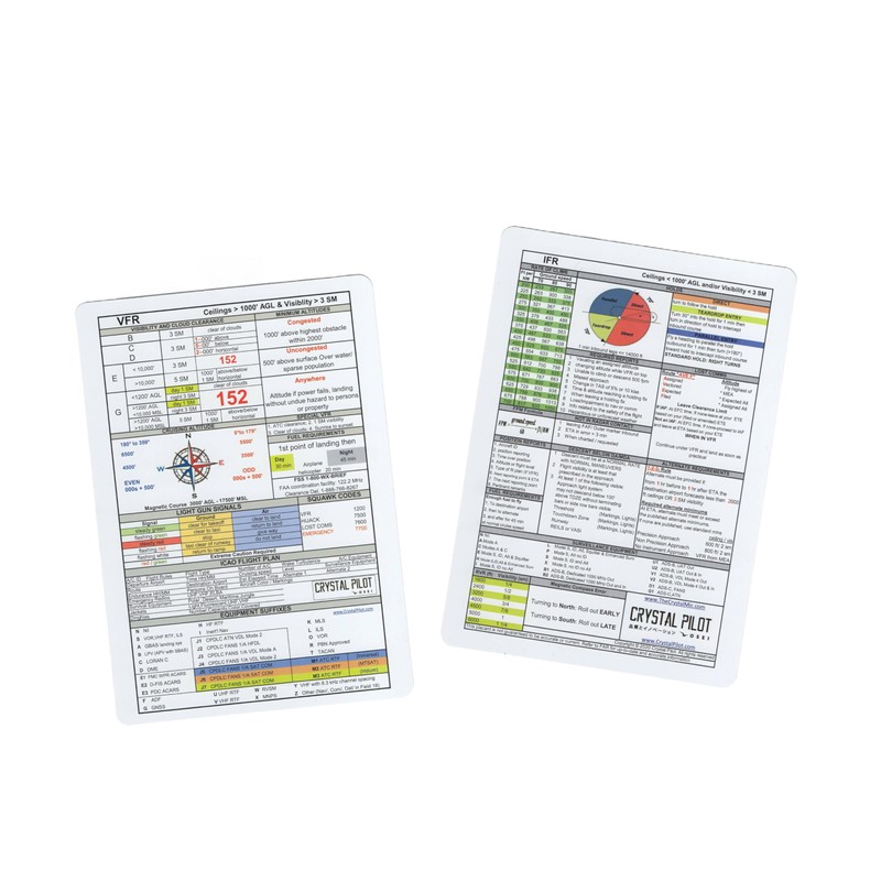 - DOUBLE SIDED: VFR INFO: Visibility & Cloud Clearances, Altitudes, SVFR, Sectional and WAC Chart Scales, ICOA Flight Plan. IFR INFO: Holds, Lost Comms, Required Reports, DA/MDA, Alternates, RVR, Climb Charts. MISC INFO: Light Gun Signals, Squawk Codes