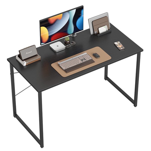 CubiCubi Computer Desk 47" Study Writing Table for Home Office, Modern Simple Style PC Desk, Black Metal Frame, Modern Black
