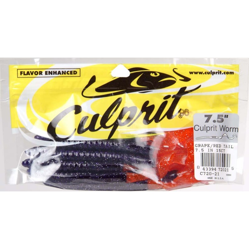 Culprit C720-21 7.5-in. Worm, 13Ct Bag Grape Red Tail, 0