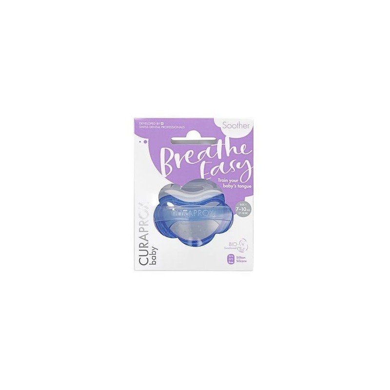 Curaprox Baby Pacifier Blue 8-18 months is a pacifier for babies from 8 months in blue, designed not to cause future orthodontic problems.
