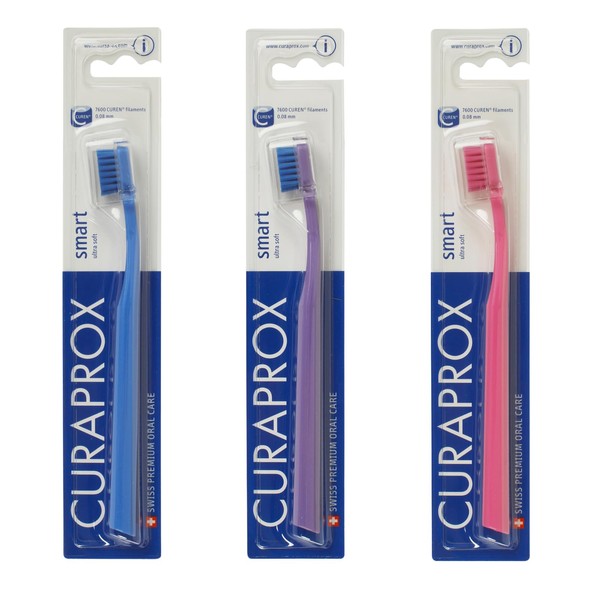 クラプロックス(CURAPROX) 歯ブラシ CSスマート 色おまかせ ブリスターパック 植毛7,600本 ウルトラソフト (アソート, 3本セット)