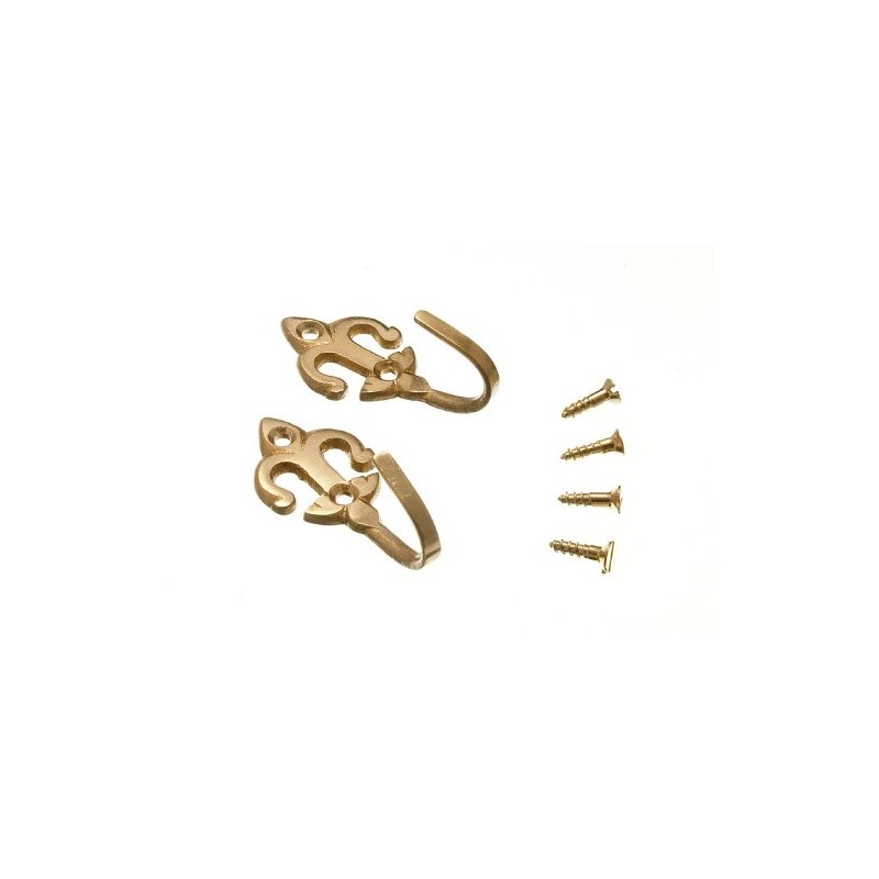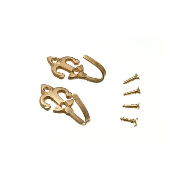 CURTAIN TIE BACK HOLD BACK HOOKS FLEUR DE LYS SOLID BRASS + SCREWS ( 1 pair )