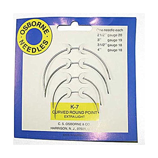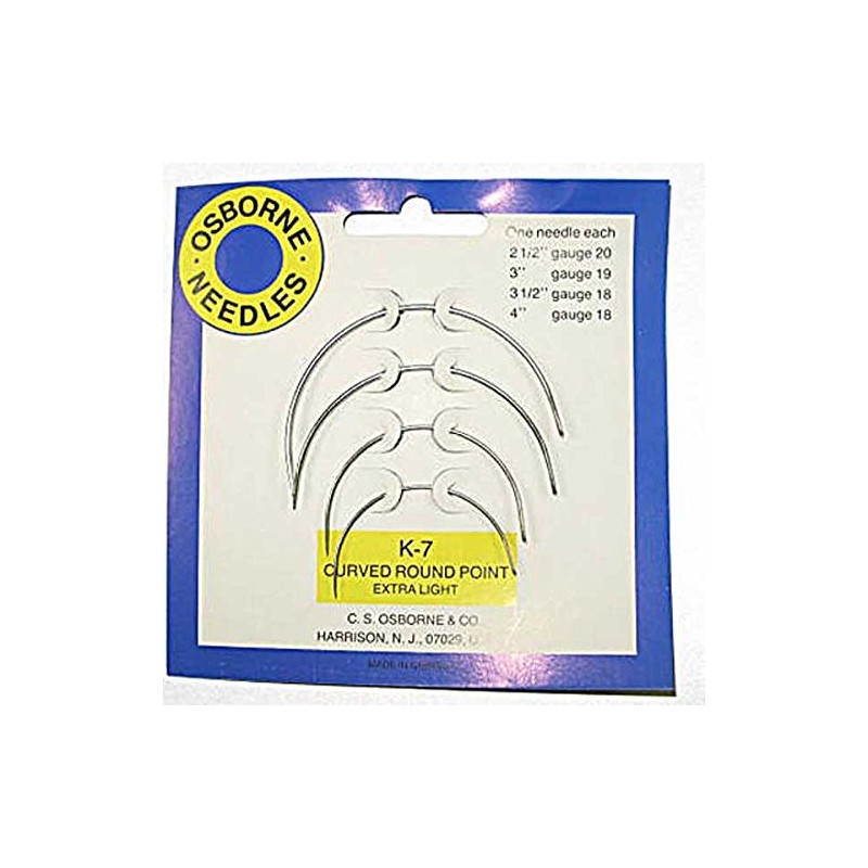 Curved Extra Fine Light Gauge Round Point Needles Kit. 4 needles one each assorted sizes 3", 4" 5" & 6" lengths