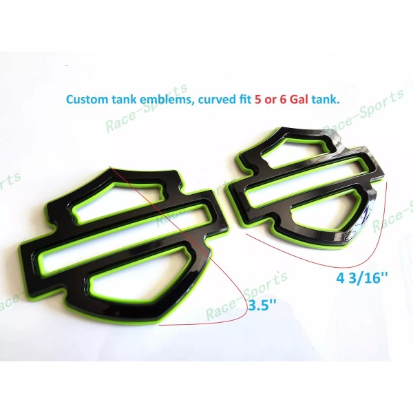 Custom 2Pcs Set Gloss Black Green Double Layer Harley CVO Custom Tank Emblems Badges