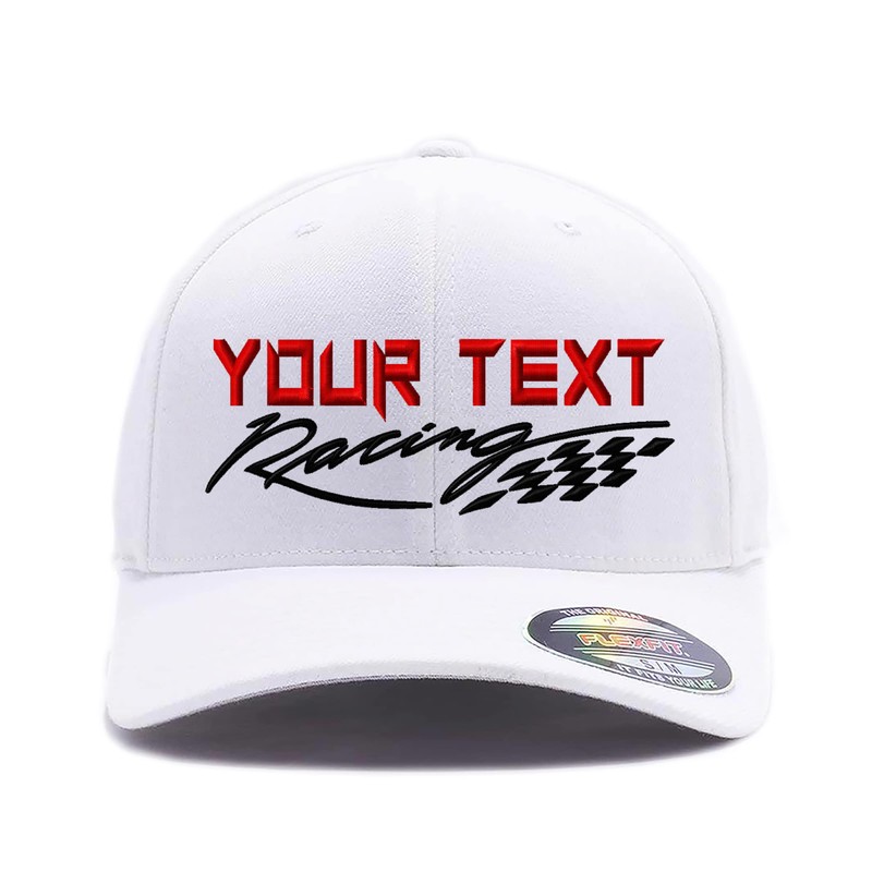 Custom Embroidered Racing Flex Wooly Combed Baseball Hat. Your Racing Logo or Name here. (White, S/M)
