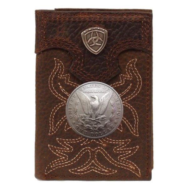 Custom Morgan Dollar Tails Brown Premium Shield Tri-fold Leather Wallet