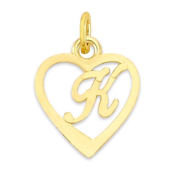 Dainty Solid 10k Gold Heart Initial Charm with Jump Ring (K)