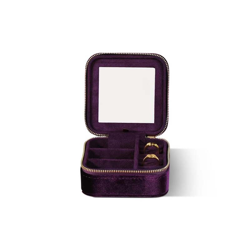 Dansmiy ジュエリーボックス, ベルベット素材, ミラー付き, リング・ピアス・ネックレス収納ケース, 多色展開, 旅行用 (復元性ベルベット, 紫色)
